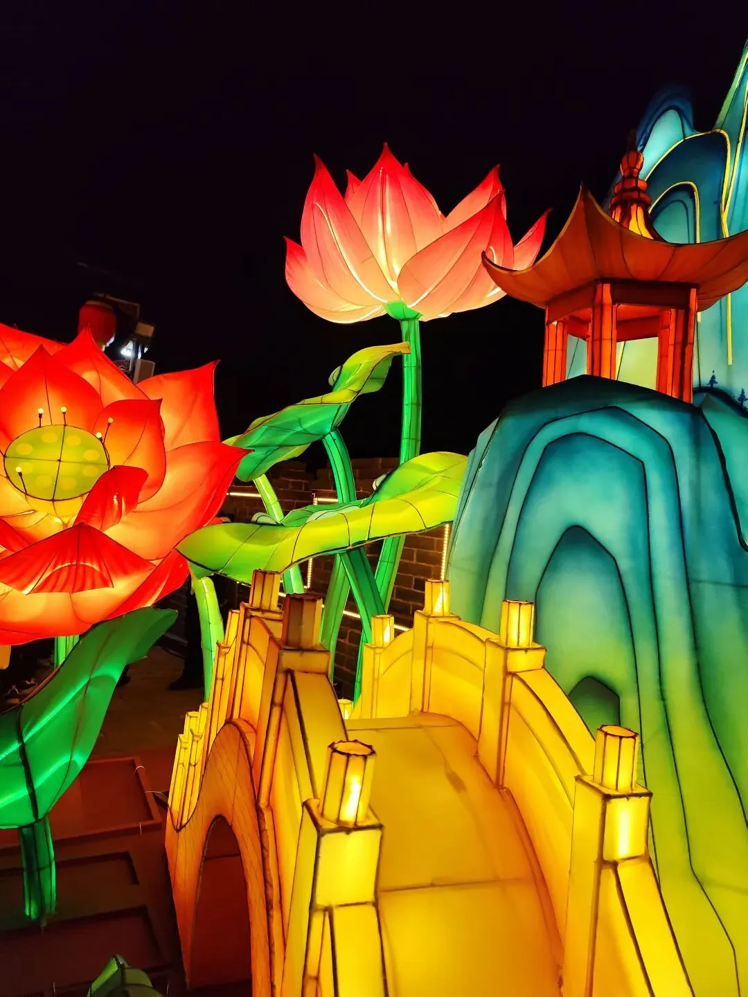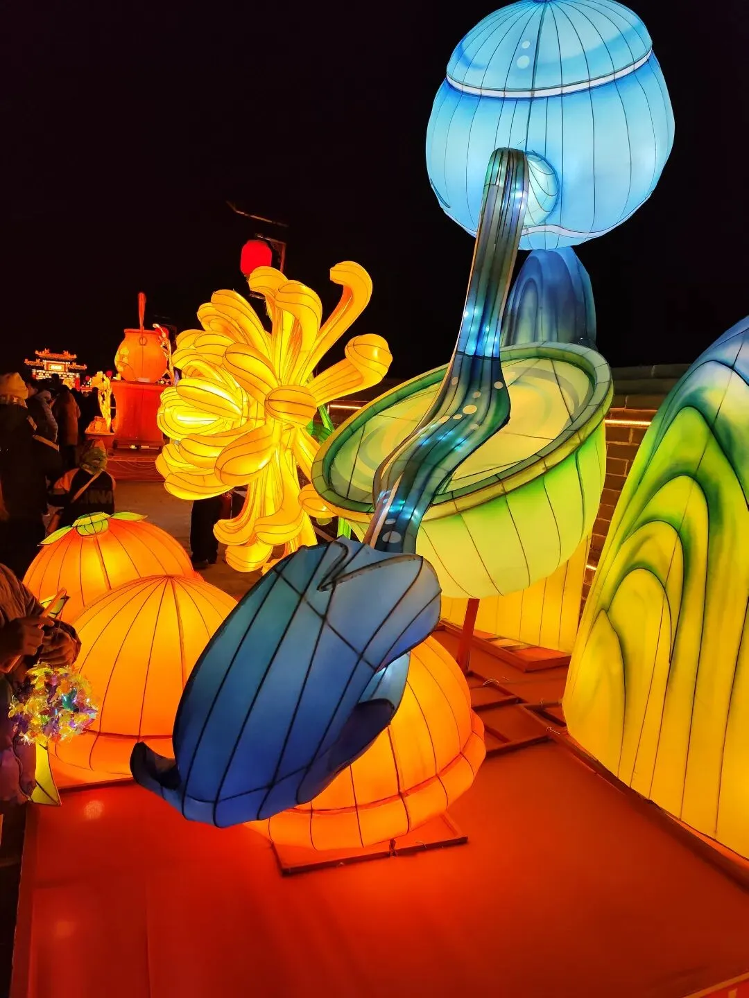 徜徉于长约千米的灯展长廊,深深感觉设计师真是太有创意了,几乎万物皆可做成彩灯!而且在夜幕的大背景之下,色彩鲜亮,美不胜收!
