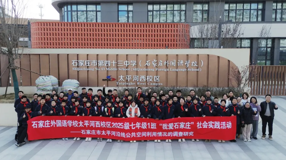 2月3日下午,石家庄外国语学校太平河西校区七年级(1)班“我爱石家庄”学生社会实践活动正式启动。本次活动旨在引导学生走出校园,走进家乡建设的前沿,通过实践观察深入理解城市发展脉络,以培养学生社会责任感与探究精神。