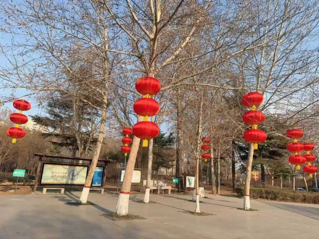 裕西公园在园区南北门、主环路及冀域风情区域悬挂灯笼、彩旗,火红灯笼与彩旗相映成趣,年味浓郁、光彩夺目。