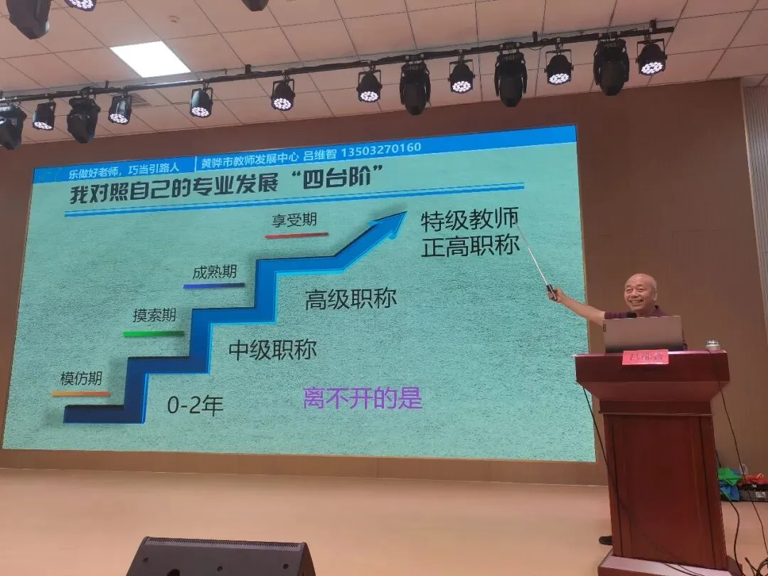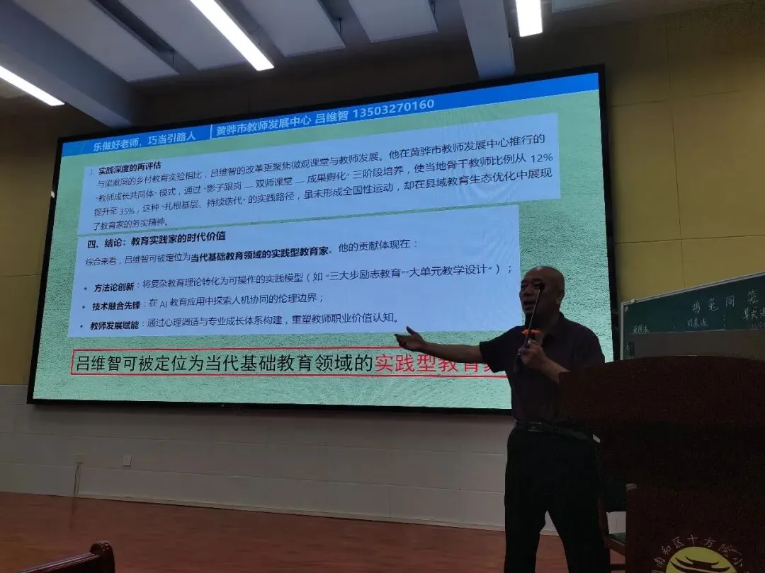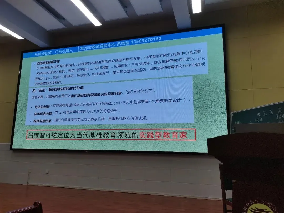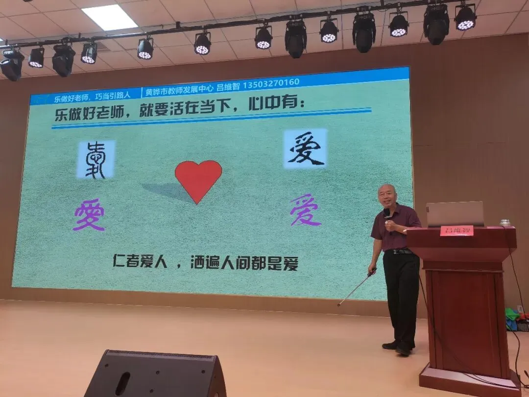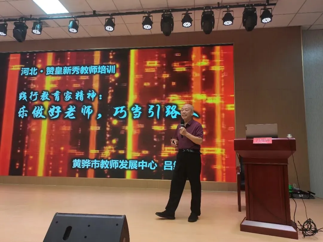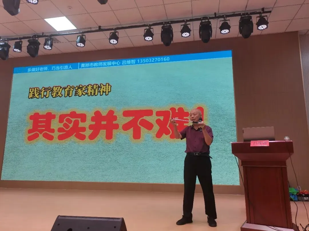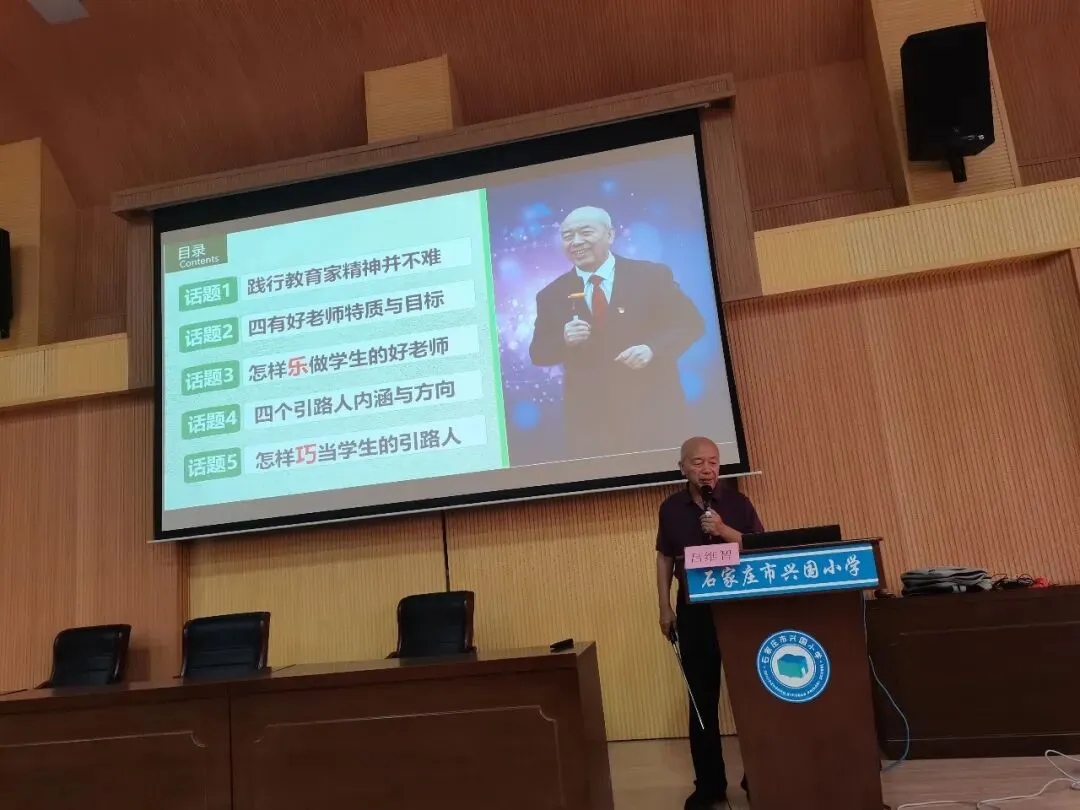 然后,吕维智来到石家庄市兴国小学为全体老师培训《践行教育家精神:乐做好老师,巧当引路人》。本讲座共五个话题。