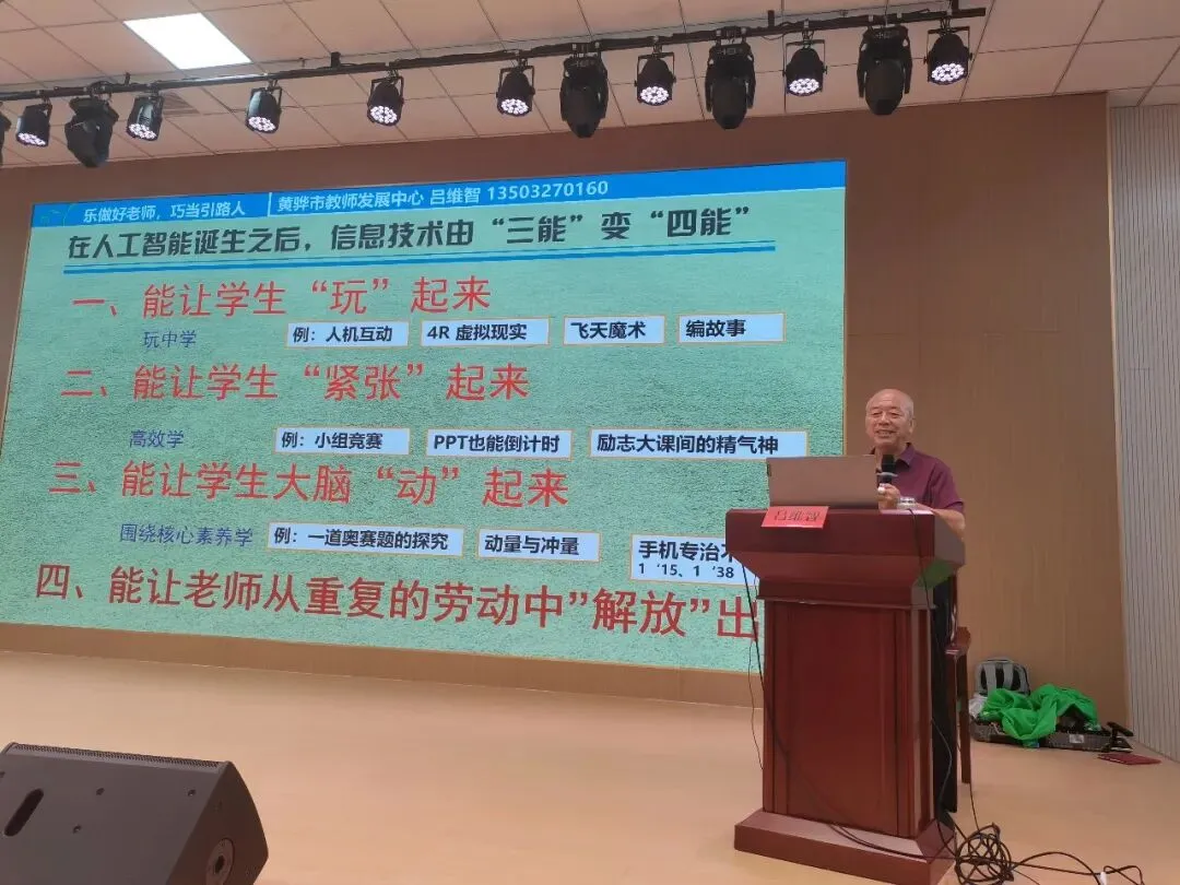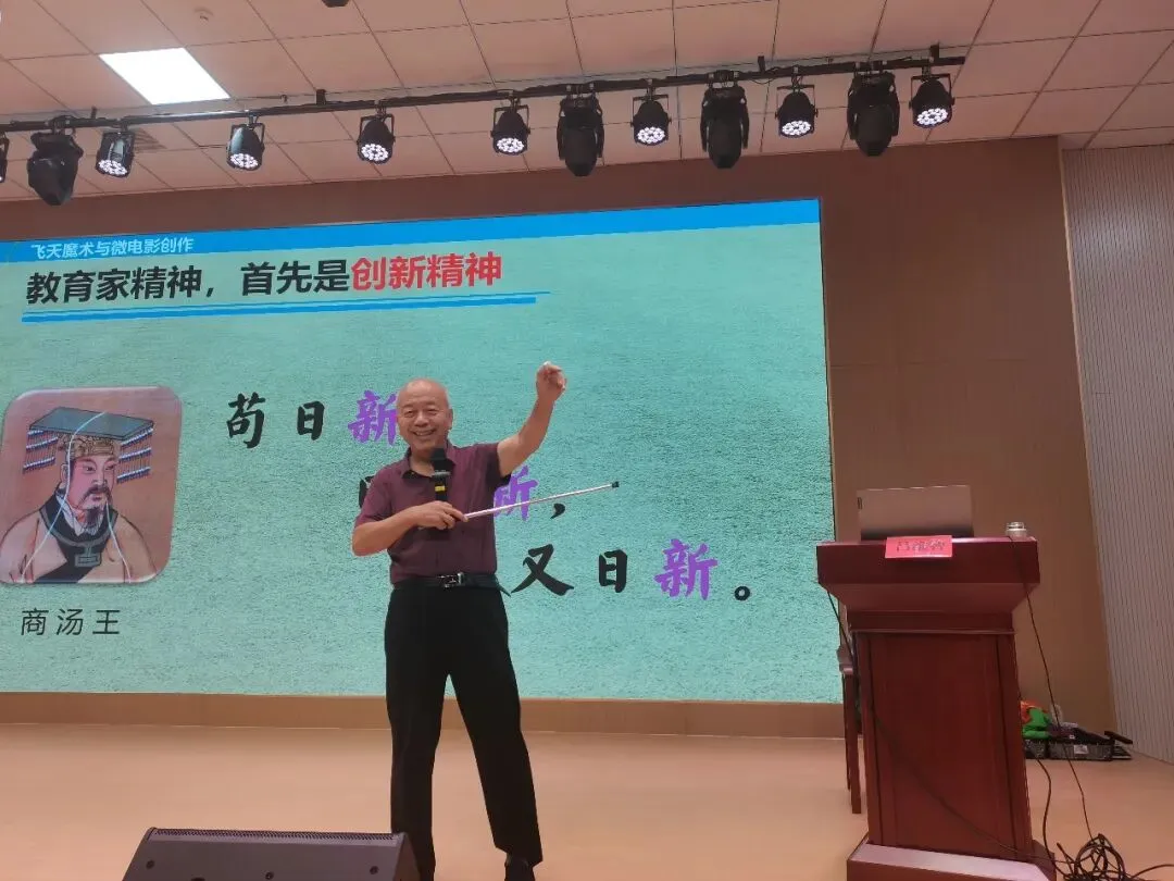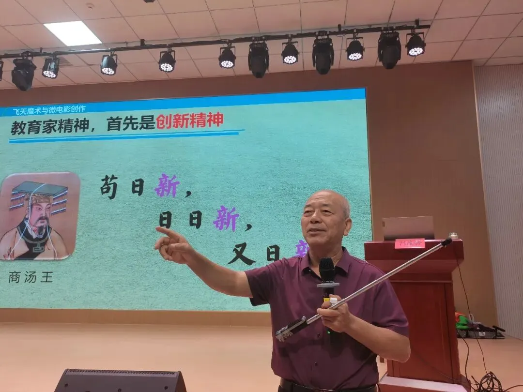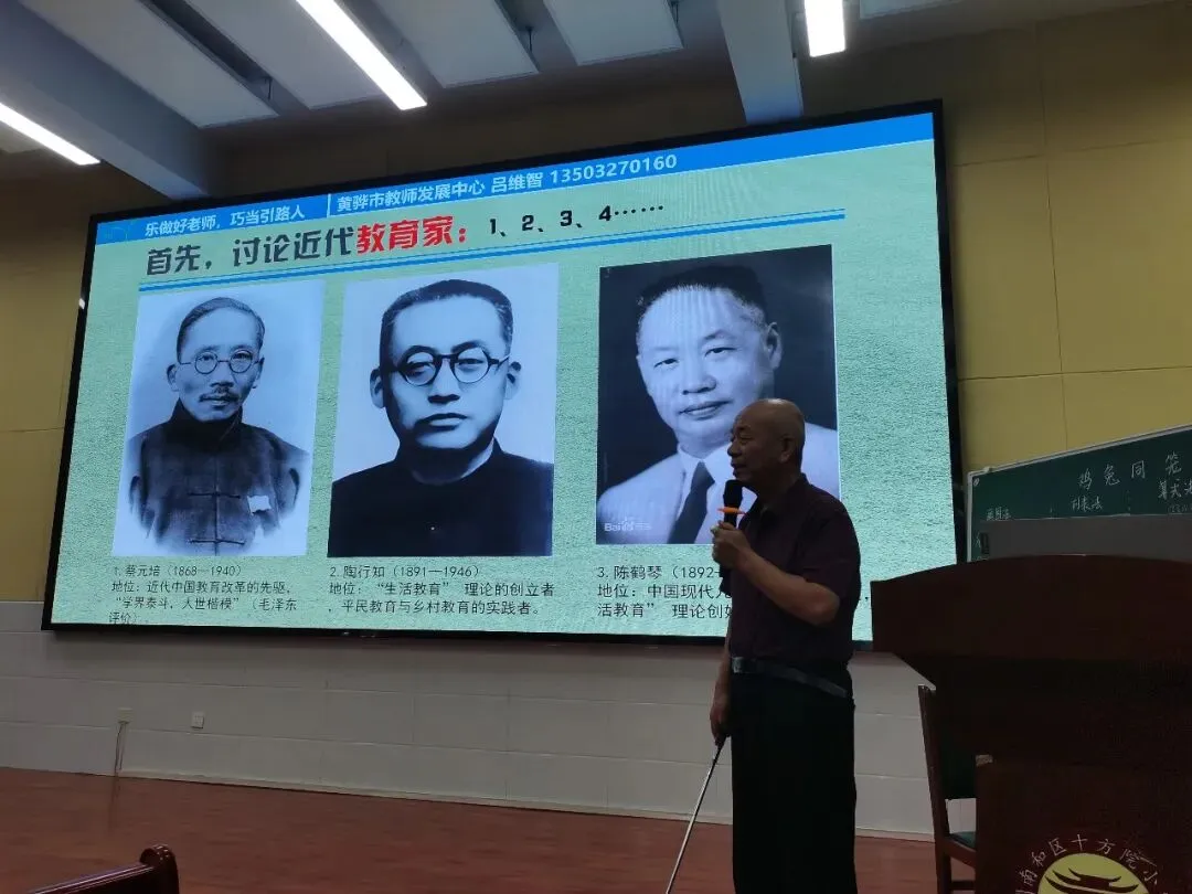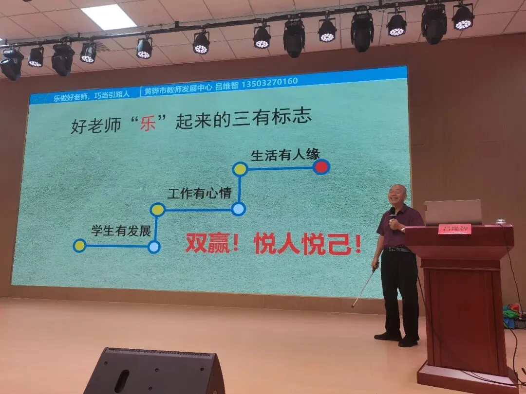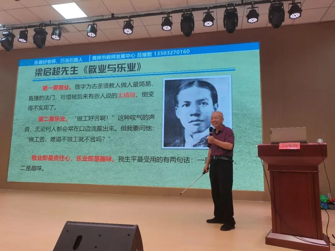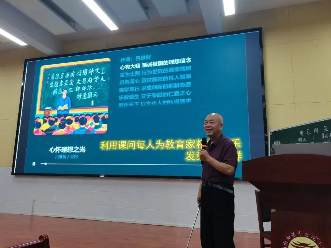 然后,吕维智来到石家庄市兴国小学为全体老师培训《践行教育家精神:乐做好老师,巧当引路人》。本讲座共五个话题。