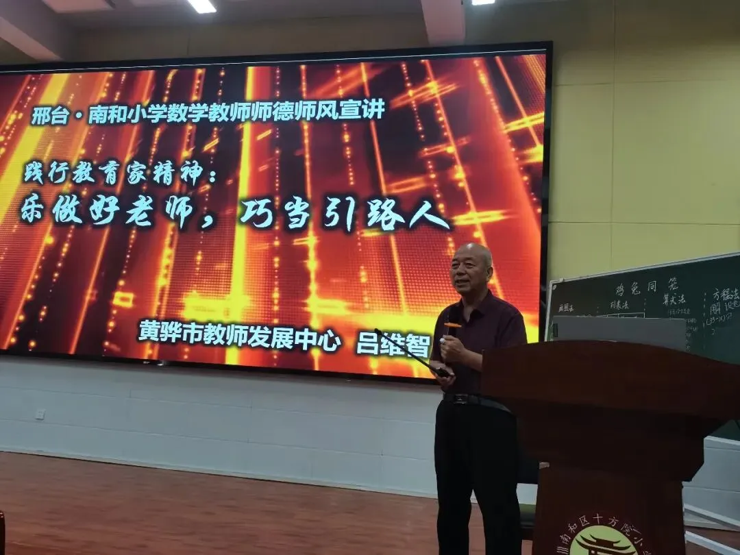 9月份,吕维智又来到河北省邢台市南和区为小学数学教师培训《践行教育家精神:乐做好老师,巧当引路人》。