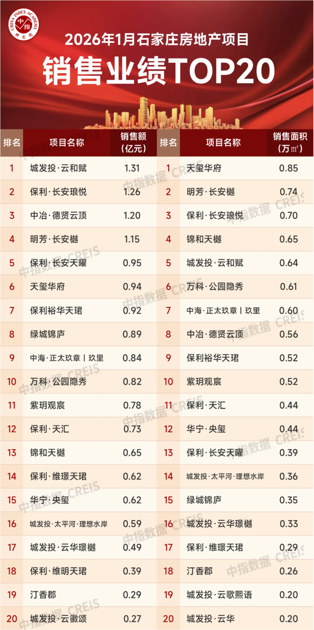 本土国企石家庄城发投集团以4.50亿元紧随其后。**城发投·云和赋**项目更是以1.31亿元的单月销售额夺得项目销售金额榜冠军,展现出本土国企的强大号召力。