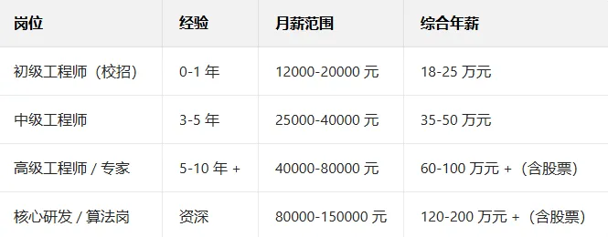 以上为通用水平,具体薪资因个人能力、司龄、绩效有差异,股票激励额度随岗位层级递增。