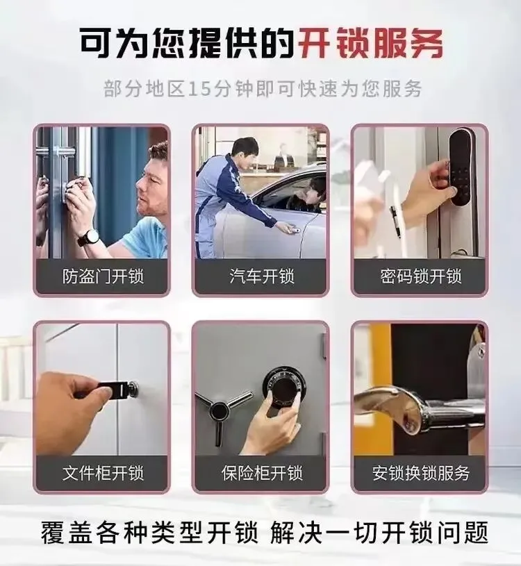 🔑 防盗门 / 木门 / 铁门 / 室内门开锁🔑 卧室门、卫生间门反锁开启🔑 指纹锁 / 智能锁 无损开锁与维修🔑 汽车开锁(轿车、SUV、商务车等)🔑 更换锁芯 / 安装新锁 / 防盗升级🔑 锁具维修、应急开锁服务📞 24小时服务热线:400-6369-698