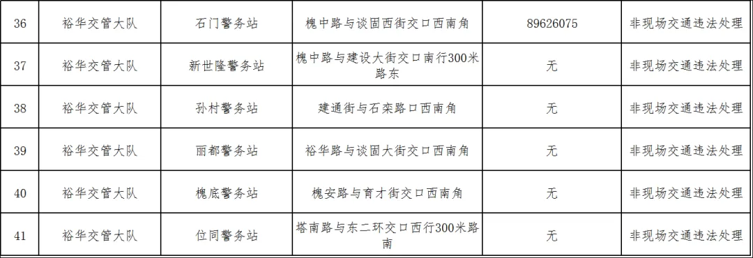 1.除本通告所列警务站外,全市其他综合警务站自本通告发布之日起,停止办理非现场交通违法处理业务。