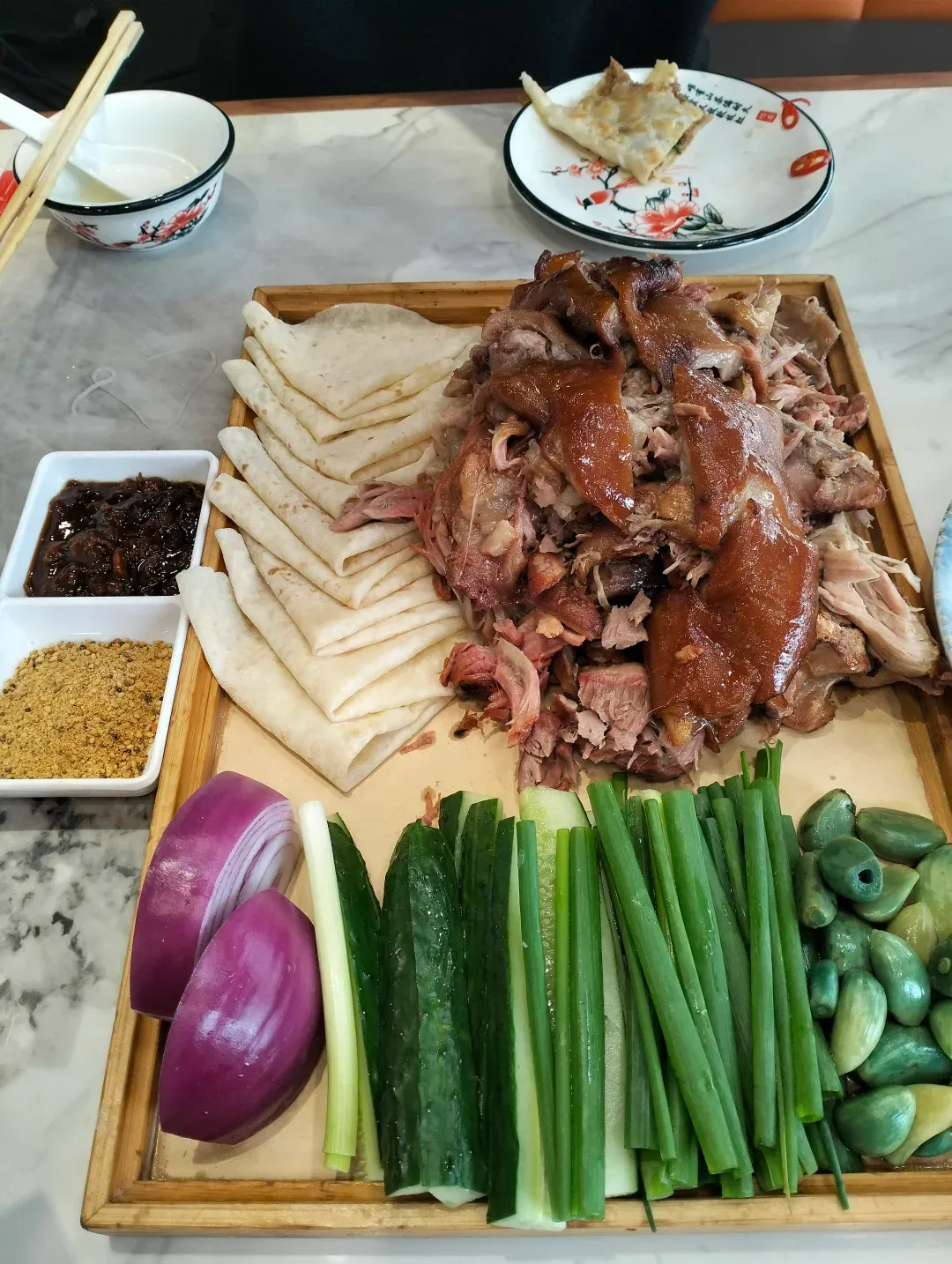 要说一道必须尝的,是“武强酱鸡”。酱油、八角、桂皮焖足两小时,火候要稳,鸡不散架,色亮而紧。凉后切片,蘸蒜醋吃,咸香里有股回甘。