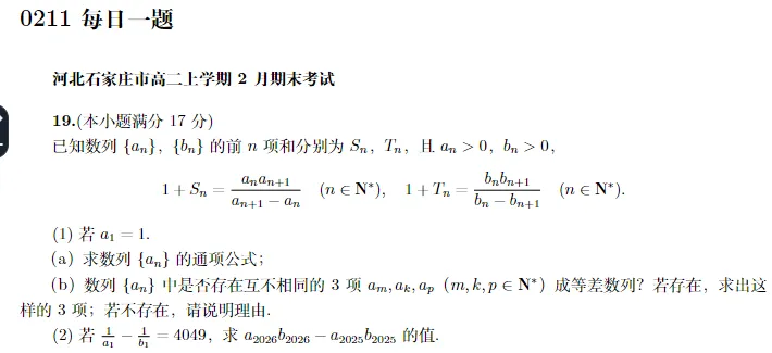 >【0211每日一题】河北石家庄市高二上学期2月期末考试T19