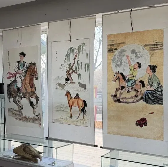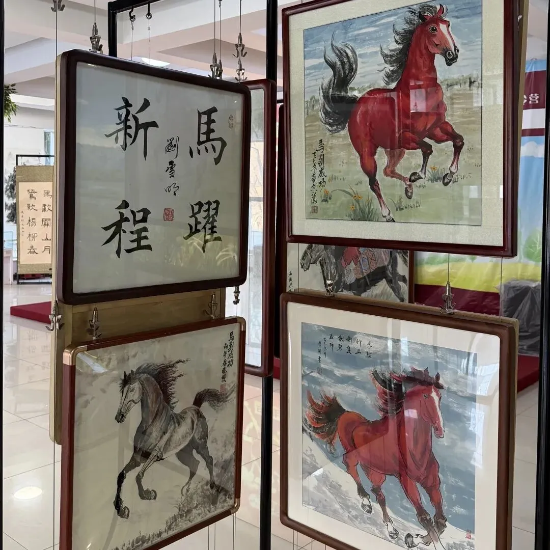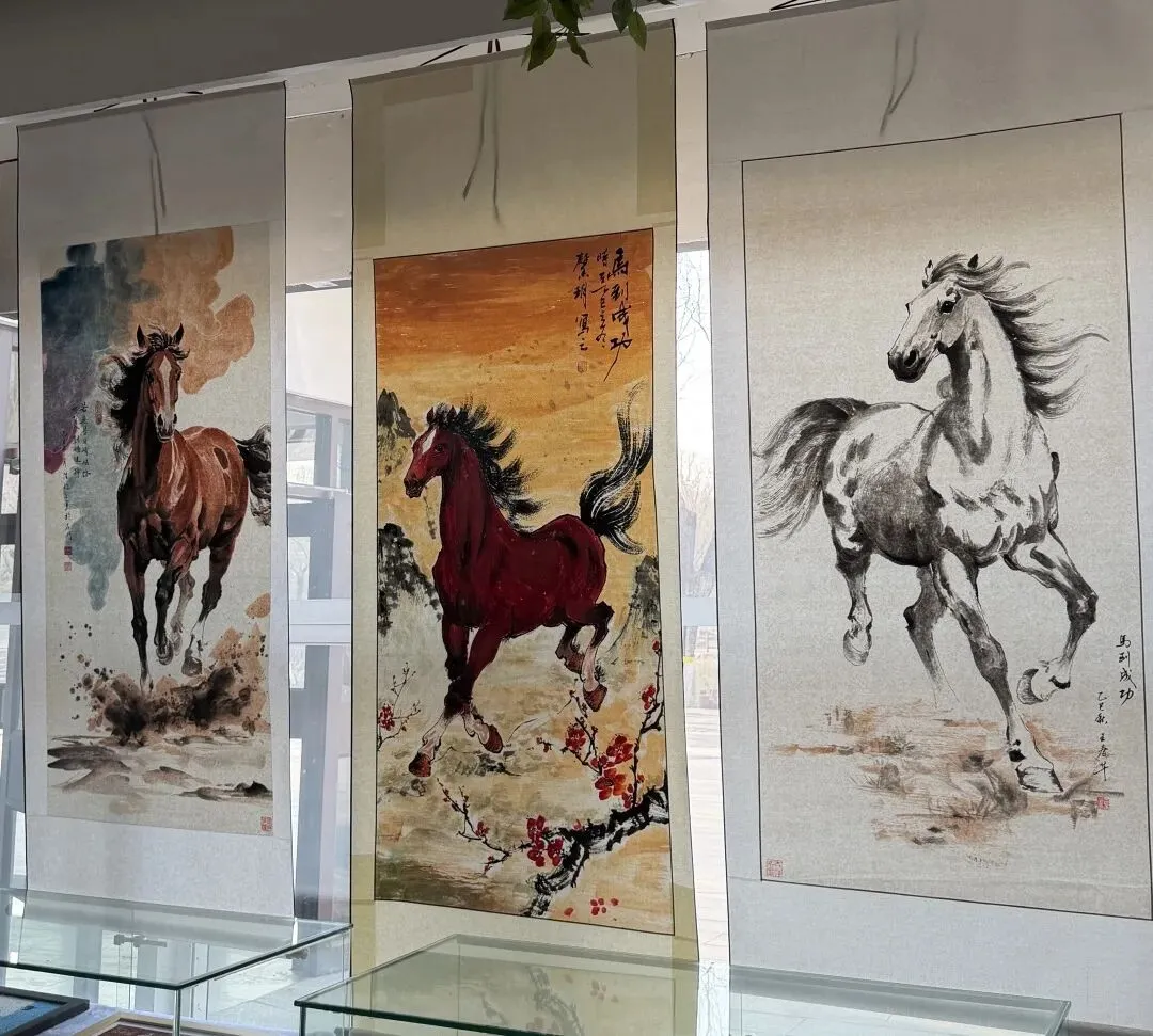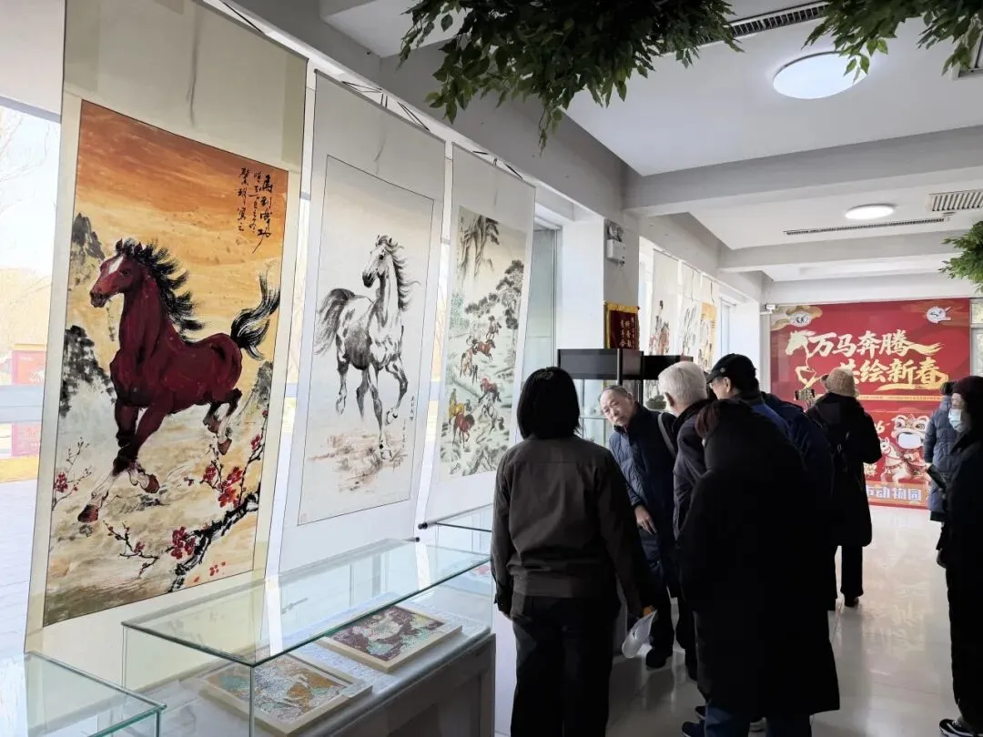 发言结束后,大家一同参观了“万马奔腾 共绘新春”书画展区。一幅幅作品笔墨各异,尽显骏马奔腾的雄姿。书画作者们纷纷驻足赏评、交流心得,现场艺术氛围浓厚。