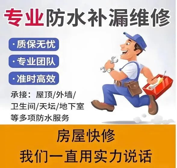 屋顶专业补漏:治理平顶/斜顶渗漏、瓦片破损、防水层老化失效。