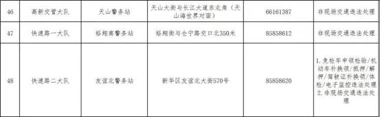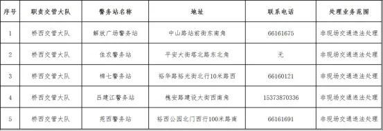 1.除本通告所列警务站外,全市其他综合警务站自本通告发布之日起,停止办理非现场交通违法处理业务。