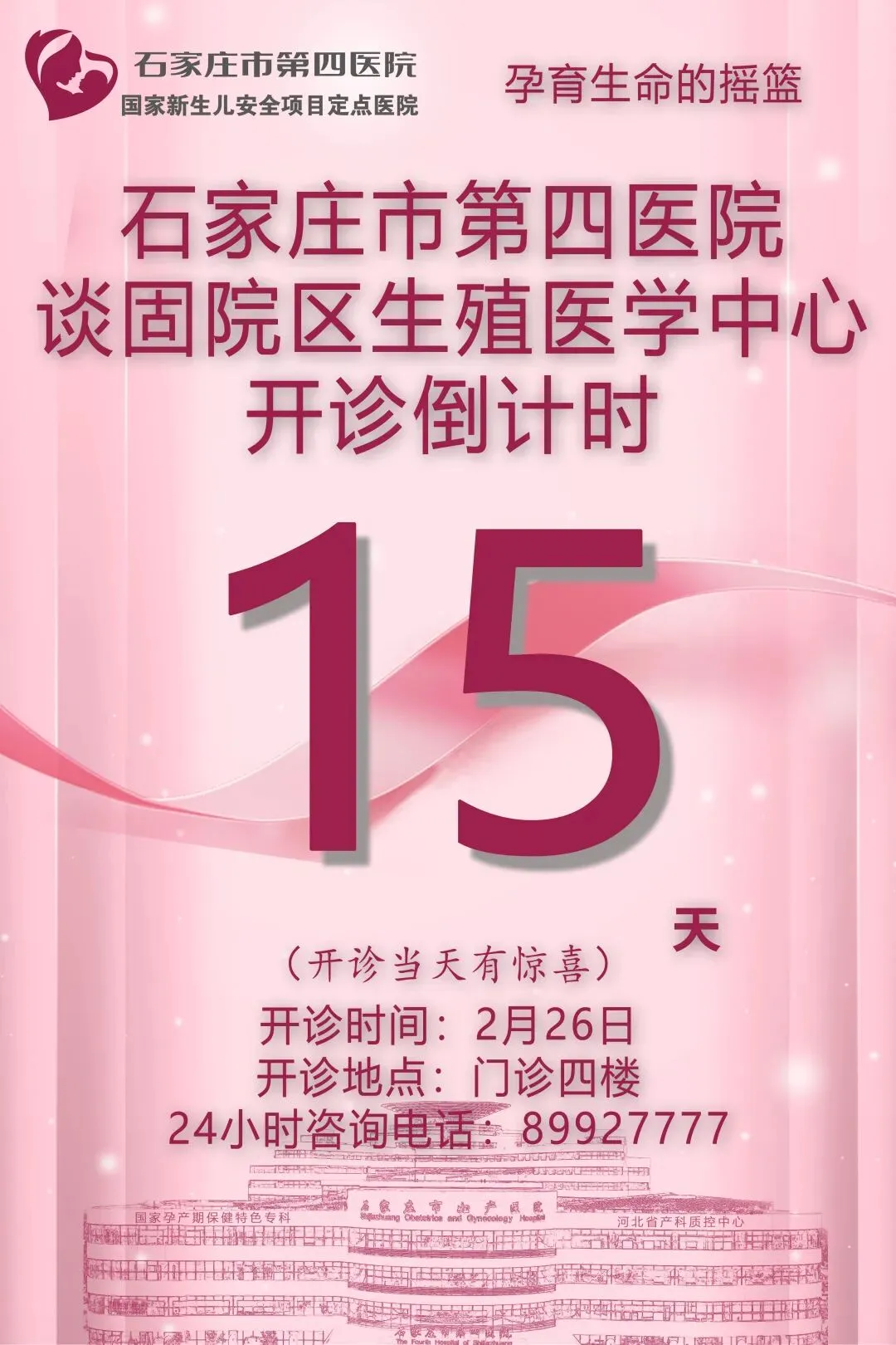 >石家庄市第四医院谈固院区生殖医学中心2月26日开诊,敬请期待!