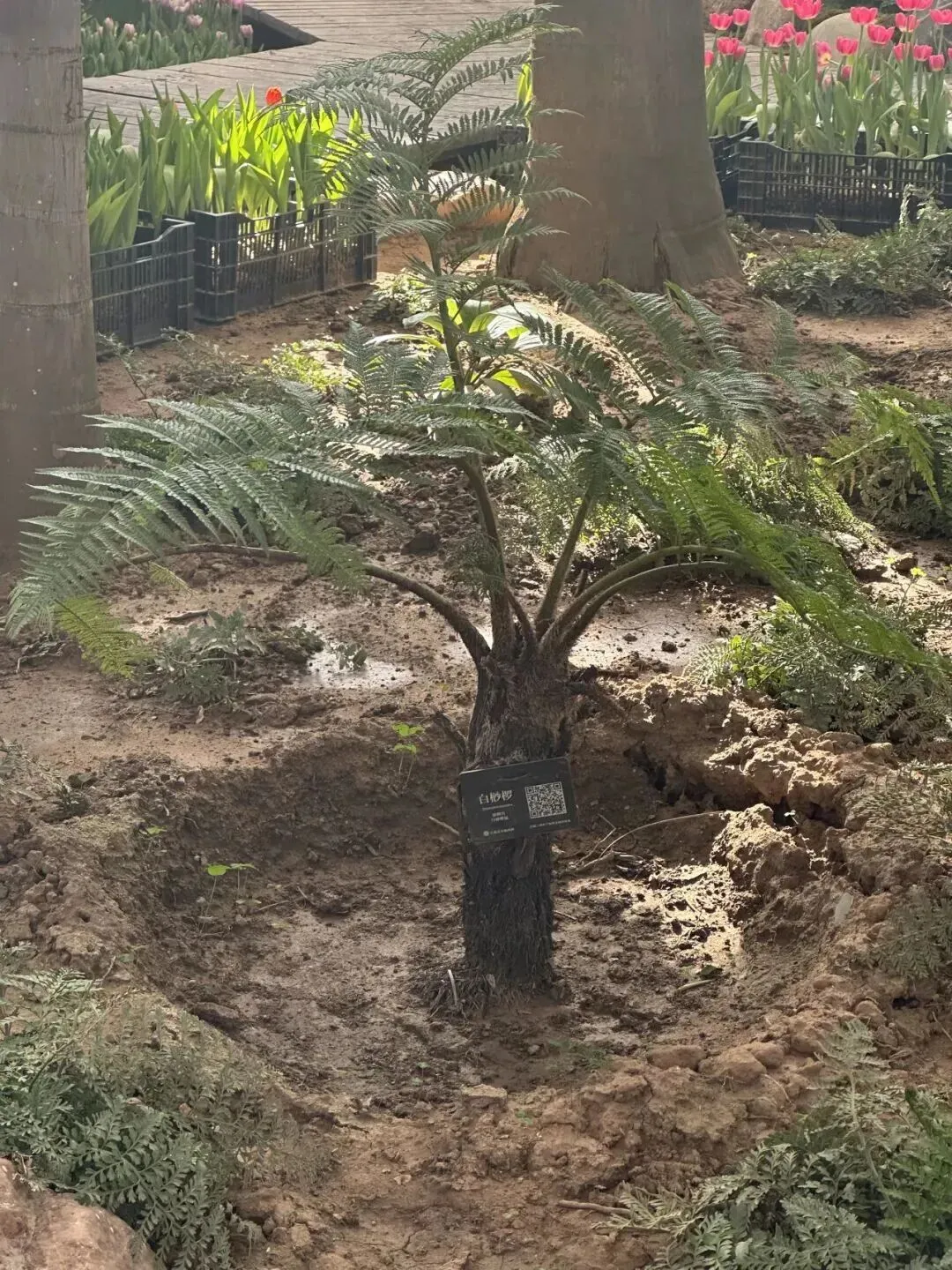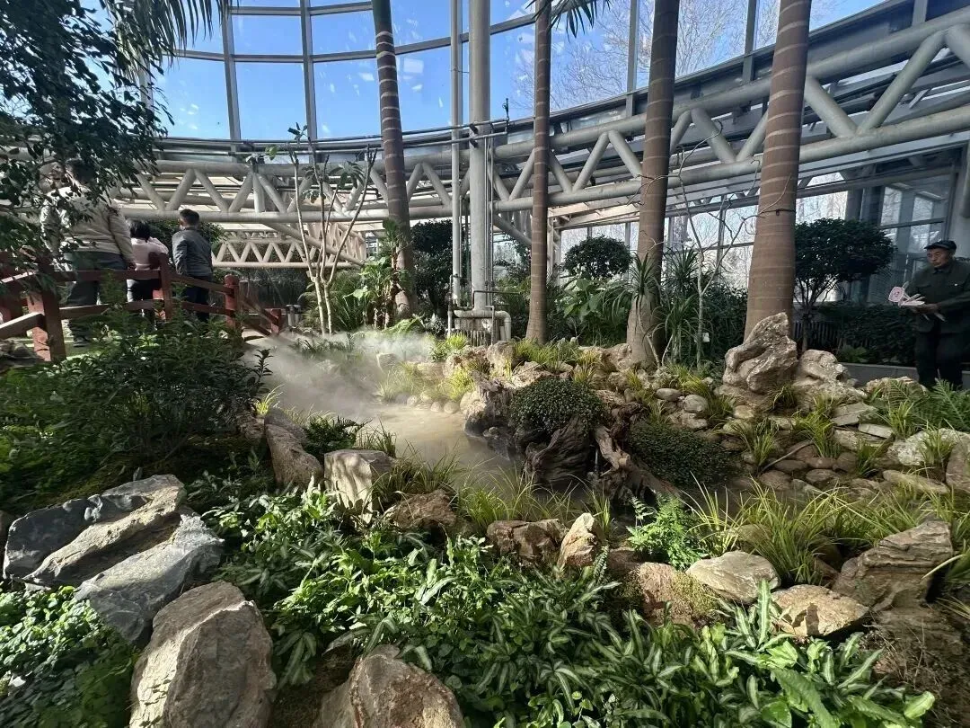 展区引入榕树、蕨类、兰花、苔藓等30余种阴生植物,搭配雾森系统与潺潺流水,营造出湿热荫蔽的雨林微气候。游客漫步蜿蜒的木栈道,可俯观湿地植被、仰赏附生兰花,沉浸式感受藤蔓缠绕、滴水叶尖的雨林生机,更能一睹白桫椤、笔筒树、金毛狗蕨等珍稀濒危植物的风采。春节期间,热带植物馆内烟火树、赤苞花、非洲芙蓉、红花羊蹄甲等花卉也正值盛花期,娇艳花朵竞相绽放,尽显热带植物的独特魅力。