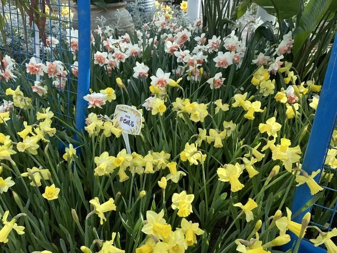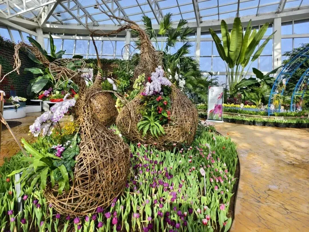 花展厅和热带植物馆内,种植了70多个品种、5万余株郁金香、洋水仙、朱顶红等球根花卉,织就了一幅繁花似锦的春日画卷。