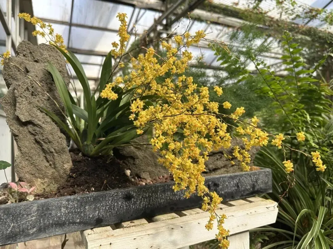 盆景园1号馆至4号馆内,近百盆蜡梅、美人梅、绿萼、宫粉等梅花盆景竞相开放,尽显古典梅韵雅致。盆景园5号馆同步举办组合盆栽展,以新品种仙客来搭配石斛兰、文竹、苔藓、枯木、奇石,打造13件园艺佳作,呈现“虽由人作,宛自天开”的园艺意境。