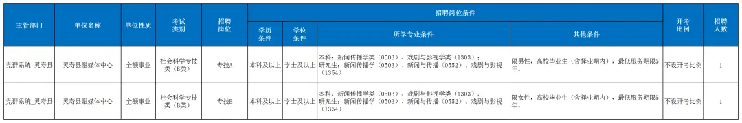 灵寿县融媒体中心招聘新闻工作人才2名,岗位及要求详见下图:
