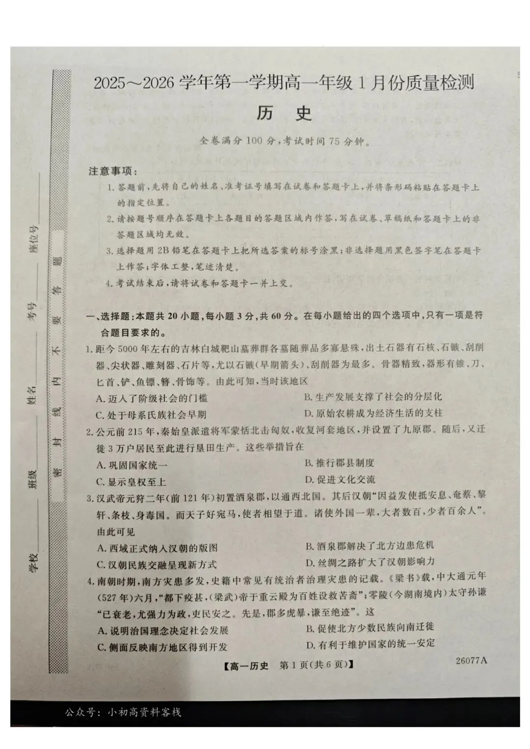 当前位置:首页>石家庄>高一期末|2026年1月石家庄市七县联合体高一检测历史卷(含答案,后附PDF版下载链接)