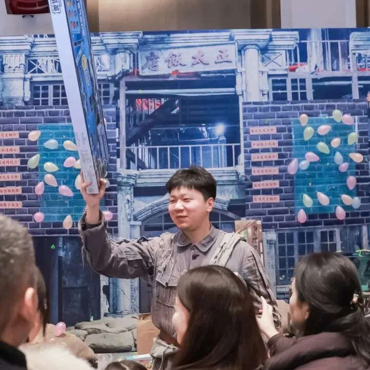 石家庄是我军以攻坚战术所夺取的第一座坚固设防的大城市,1947年的石家庄承载着革命转折的厚重记忆。演出深挖这段红色文脉,将解放后的城市复苏图景铺展于滹沱宾馆455亩园林之中,青云桥、听雨轩等苏派建筑化身实景舞台,青砖黛瓦间再现当年市井繁华。演员们化身杂货摊主、手艺匠人、茶馆掌柜等各色市井NPC,与游客实时互动解谜,在沉浸式体验中触摸城市精神根脉。