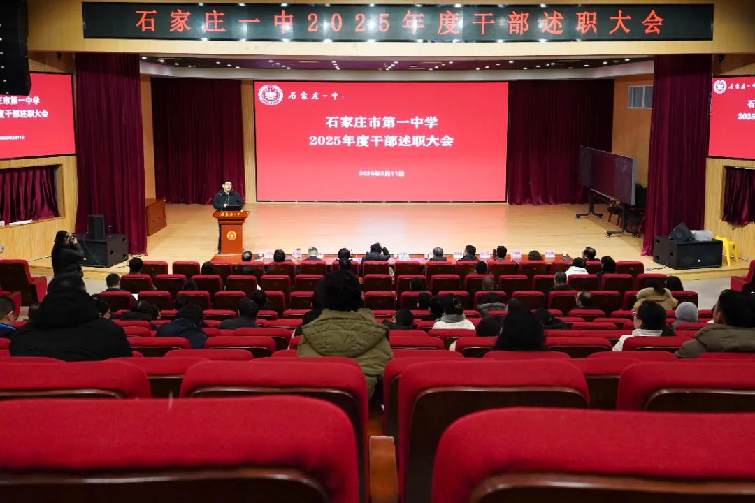 2026年2月11日,石家庄一中教育集团在韫华剧场隆重召开2025年度干部述职大会。集团各校区、各分校全体领导班子成员、中层干部、教研室主任及教师代表齐聚一堂,全面复盘2025年度学校教育教学发展各项工作,深入交流工作经验,科学谋划2026年度发展蓝图,为学校集团化办学高质量发展凝聚奋进力量。