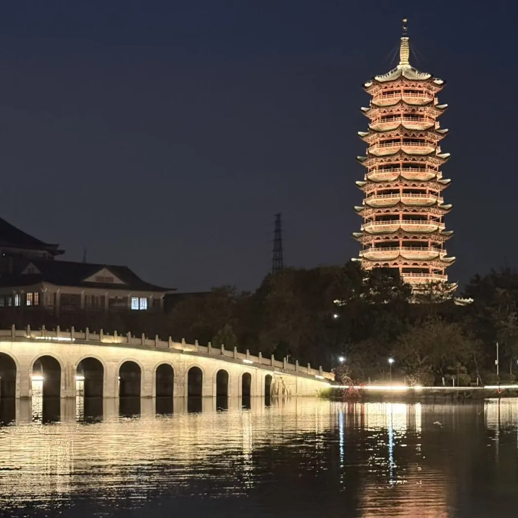 琉璃碧瓦枕清流,步入南医顺德校区,便撞进了一轴岭南画卷。虹桥卧波,烟雨濛濛;紫荆坛嫣然照水,春深如酒,一地紫红的重瓣诗笺。凌云塔八边九层,风铃响在檐角,倒映在兰亭下的涟漪里,碎成一片星子。