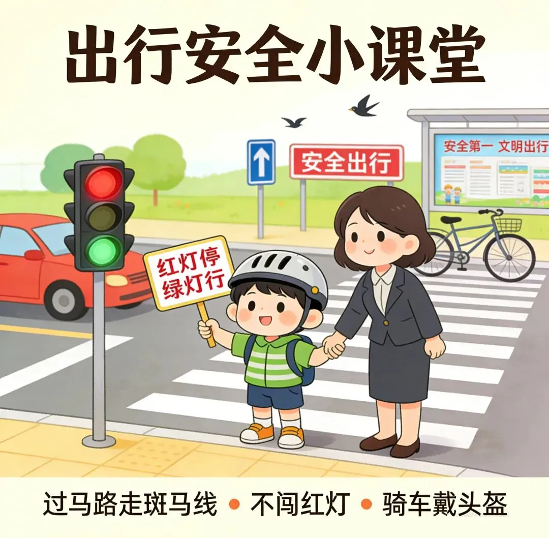 遵守交通规则,看护好孩子不脱离视线,不乘坐无资质交通工具;外出做好防护,人多场所有序排队,谨防拥挤踩踏及走失。