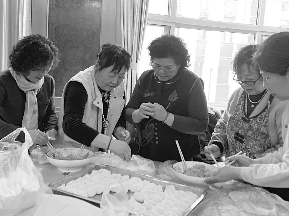 图为老人们一起包饺子。本报记者 郭莉萍 摄