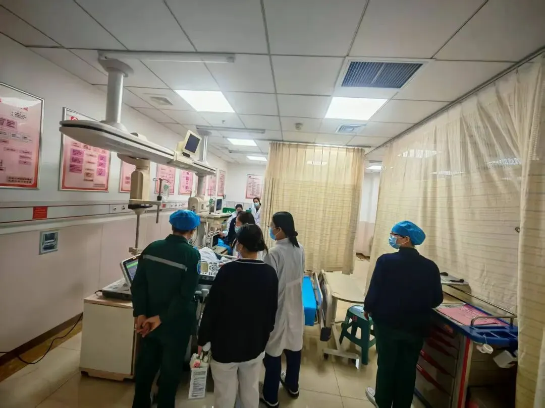 红区内,产科医护团队与急诊团队密切协作,为孕36周患者迅速完成吸氧、建立双静脉通路、完善血气分析、血尿常规、毒物检测、床旁心电图及产科B超等检查,同步开展补液、利尿及抑制宫缩等规范治疗。急诊科、产科、儿内科、成人内科及功能科医师全程参与评估,动态研判风险,充分体现MDT多学科协作优势。