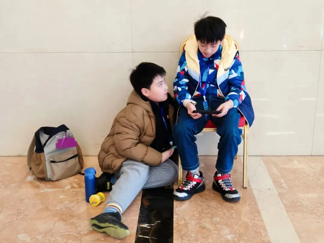 聊起去年的参赛经历,孩子们都记得一句话:where are you由于去年没有订到赛事酒店,所以每天带孩子们乘坐组委会安排的大巴往返。期间感谢上海明日之星桥牌俱乐部的雪中送炭,借给我们一间房歇脚。电梯必须刷房卡才能上去,因此出现了开头的一幕:一打完比赛,幼崽们纷纷发我消息“嗷嗷待接”。▲去年开赛第一天蹭了组委会准备的讲座,其实我只是想找一个亮堂舒适的地方坐下▲“可不可以换我坐一会儿?”