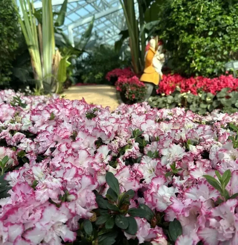 春风拂绿,百花吐蕊。想在春节期间邀上你的赏花搭子一起赴一场浪漫花约吗?2026年石家庄市植物园新春花展启幕,满满新意与春色将承包你整个节日的快乐。本次花展共展出郁金香、洋水仙、蝴蝶兰、倒挂金钟、杜鹃、红掌、仙客来、一品红、天竺葵、凤梨、梅花、海棠、朱顶红、百合等各色花卉植物8万余株,打造四大特色主题展区,同步推出新春互动体验,将赏花观景、生态展示、园艺雅趣、科普手工融为一体,使游客在姹紫嫣红中邂逅春光,体会别样的游园乐趣。