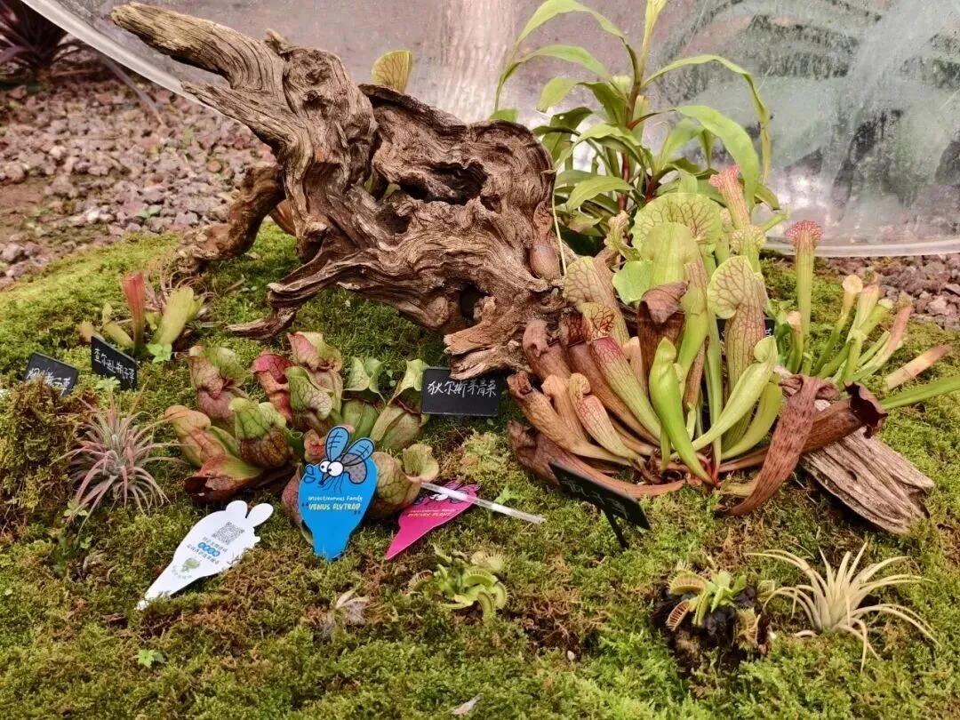 热带植物馆食虫植物区展出了10余种珍奇兰花,有形态奇特的兜兰、高贵迷人的万代兰、艳丽无比的卡特兰、可爱俏丽的文心兰以及珍奇宝贵的树兰、火焰兰、狐尾兰等,美丽奇特的兰花异香扑鼻,各展风姿。猪笼草、瓶子草、捕蝇草、茅膏菜等10余个品种的食虫植物也在这里惊艳亮相,带领游客探秘植物的奇妙世界。