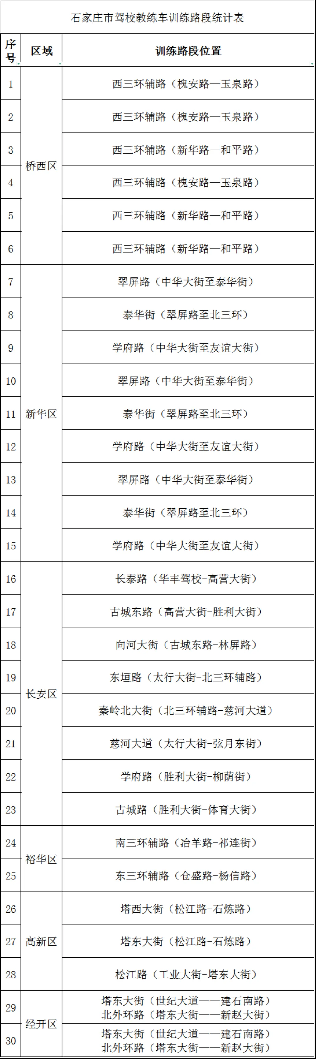 为有效缓解城市道路交通压力,提升通行效率,规范教练车教学活动管理,依据相关法律法规规定,石家庄市公安局交通管理局将原位于三环内的教练车训练路段有序向三环外迁移,实现教练车与社会车辆的有效分流,减少因练车活动引发的安全隐患,保障群众出行安全。