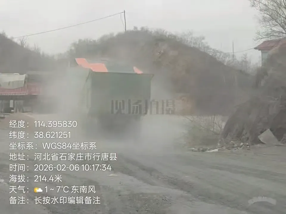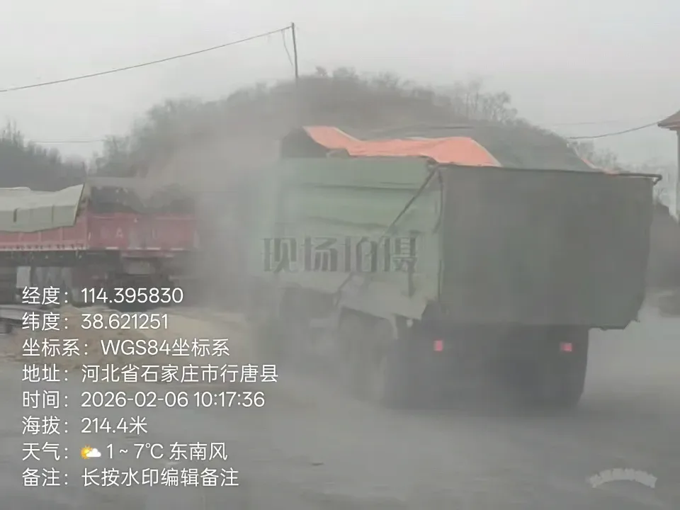 青山本应孕佳果,净土岂可任尘污?在河北省石家庄市行唐县口头镇水坡峪村冬枣示范园项目施工现场,挖运砂石作业肆意开展,烟尘四起、遮天蔽日,无围挡、无喷淋、无覆盖、无车辆冲洗,全套环保措施全然缺位,扬尘污染肆意蔓延,严重侵扰周边村民生产生活,践踏生态环保底线。更令人触目惊心的是,超载货车满载砂石、满负荷疾驰,横行于乡村公路沿线,车身颠簸,道路破损、隐患丛生。而距工地仅百米之遥的治超站,竟如虚设之岗、空悬之牌,对违法超载车辆视而不见、放任通行,法定监管职责抛诸脑后,道路安全防线彻底失守。交通部门日常巡查流于形式,治超办源头管控缺位失责,层层监管形同虚设,失职渎职之态尽显,让法治权威与民生安全蒙尘。依据《中华人民共和国大气污染防治法》《河北省扬尘污染防治办法》,施工单位未落实防尘降尘措施、造成严重扬尘污染,须依法责令停工整治、顶格处罚;依据《中华人民共和国道路交通安全法》《公路超限检测站管理办法》,超载运输车辆须立即查扣、从严惩处,治超站工作人员不履行监管职责、玩忽职守,应依规依纪严肃追责;交通部门履职不力、监管缺位,治超办统筹不严、督导失责,亦须依法依规倒查问责,绝不姑息。生态为基,法治为纲,民生为要。期盼相关部门迅速介入、彻查乱象,严处污染主体、严追监管失职、严整行业乱象,以铁腕执法守护蓝天净土,以刚性问责筑牢监管防线,还乡村一片清朗空气,保道路一方平安有序,让法治尊严不容践踏,让民生福祉不受侵害!