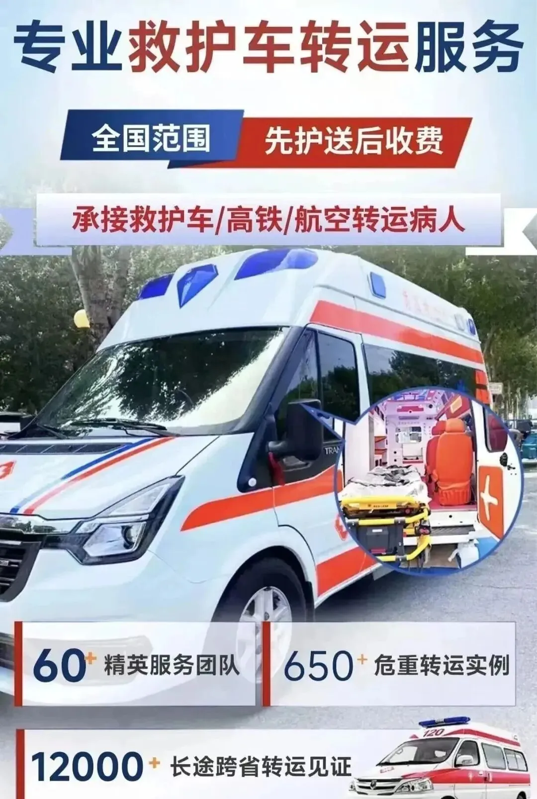 提前预约:长途、重症提前预约。