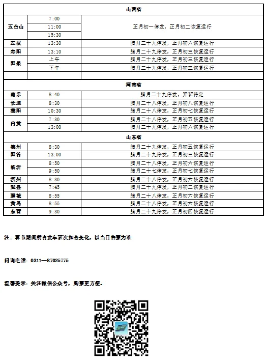 >【信息转载】2026年石家庄客运总站春运发车计划