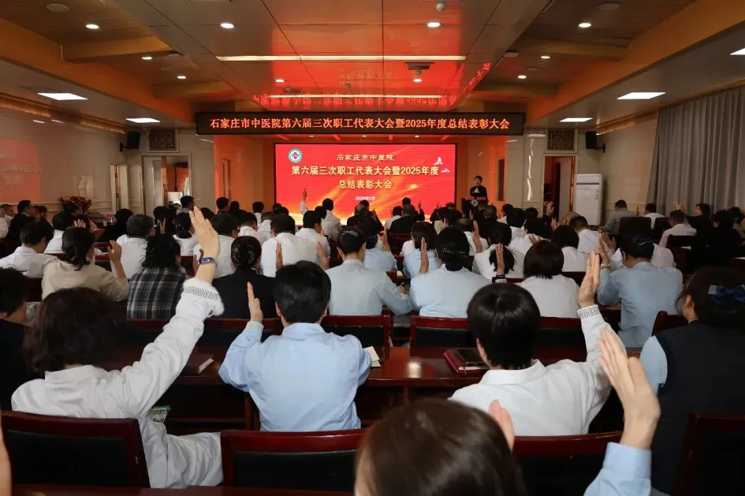 为进一步凝聚全院职工智慧力量,推进医院高质量发展,2026年2月12日,石家庄市中医院第六届三次职工代表大会隆重召开。医院领导班子、全体职工代表、列席代表齐聚一堂,共绘中医事业新蓝图。