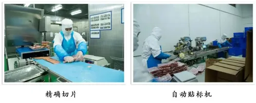 该公司生产设施完备,车间为全封闭式标准熟食加工车间,工艺布局合理,具备加工各种熟食制品的条件和能力,拥有一流的淸洗、加工、熏蒸、烤、煮、炸、真空包装、速冻等先进的生产流水线设备。公司产品的加工釆用冷鲜工艺和速冻工艺,其中公司生产的低温切片类产品先进的工艺,稳居国内前列,切片无破损、无孔洞口感上佳,深受国内外高端客户的信赖。