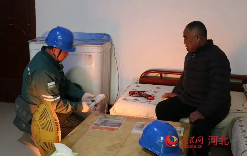 国网赞皇供电公司嶂石岩服务站贾立杰在帮村民检查线路。人民网记者 祝龙超摄