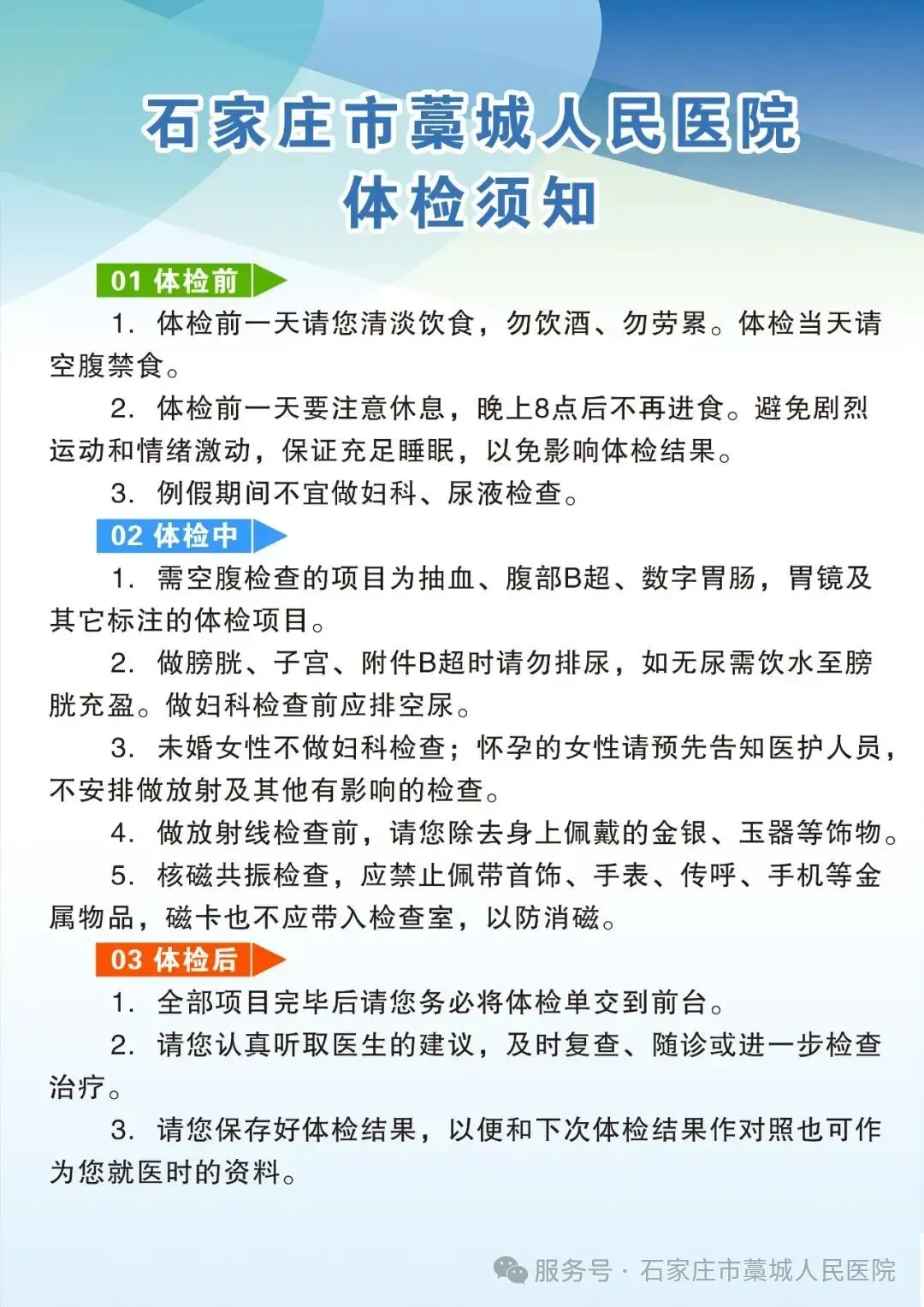 石家庄市藁城人民医院健康体检科全体医护人员,已备好专业与用心,等候您的到来!
