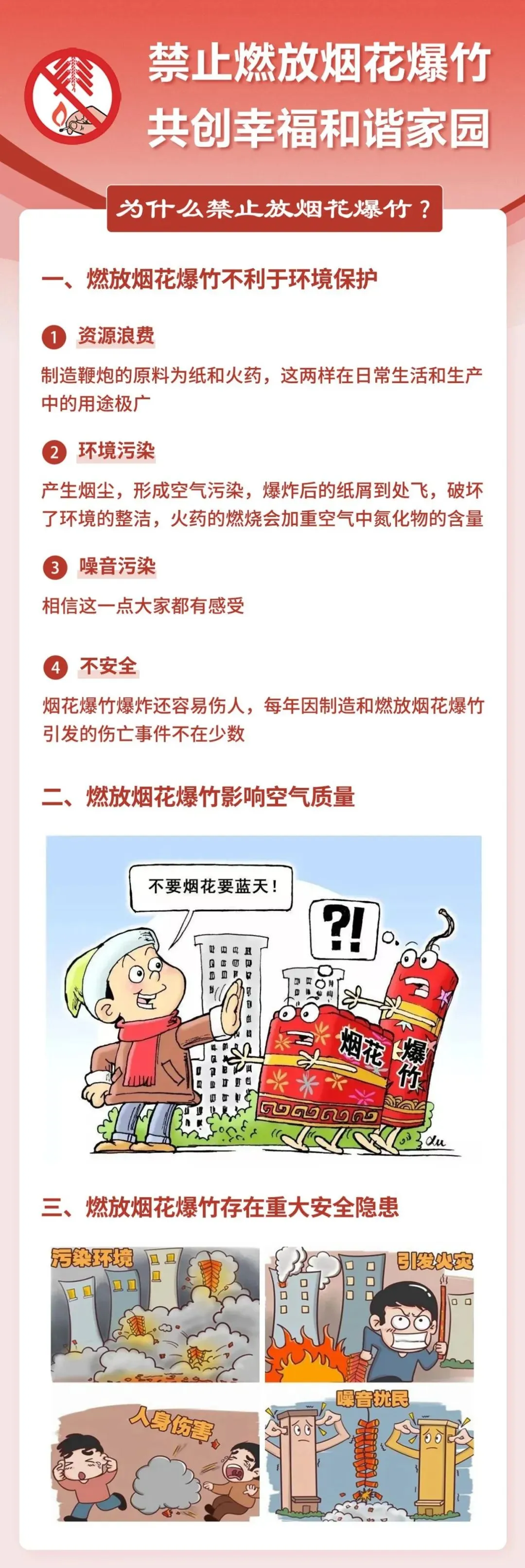 为守护群众生命财产安全,改善空气质量,维护公共秩序,根据《中华人民共和国大气污染防治法》《中华人民共和国治安管理处罚法》《烟花爆竹安全管理条例》等相关法律法规,结合实际,现就禁放烟花爆竹事项通告如下: