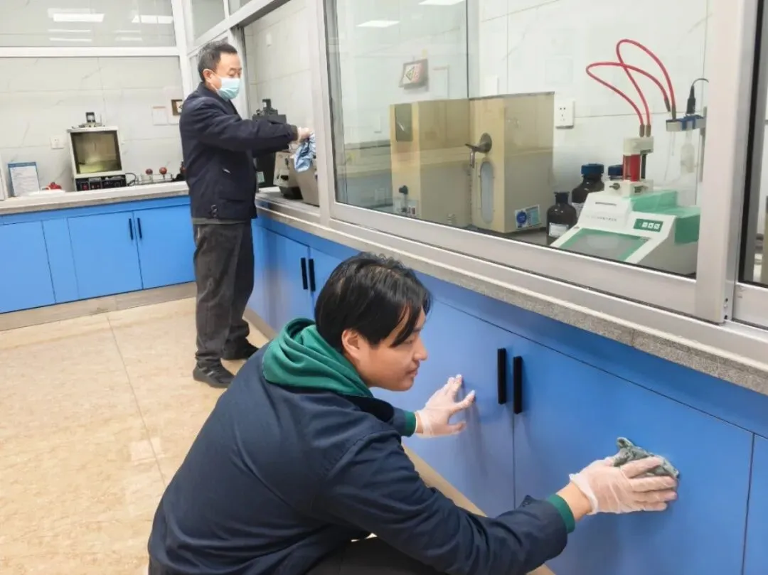 春节将至,化验室组织全体人员开展节前大扫除。大家积极行动,对实验间、药品间、值班室等区域进行全面清扫,重点清理卫生死角,规范物品摆放。通过此次清扫,营造出整洁舒适的工作环境,确保以崭新面貌迎接新春佳节。