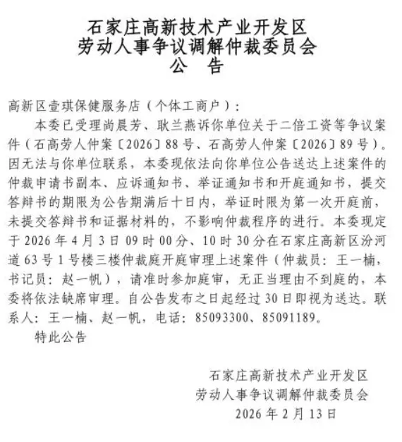 >石家庄高新技术产业开发区劳动人事争议调解仲裁委员会公告