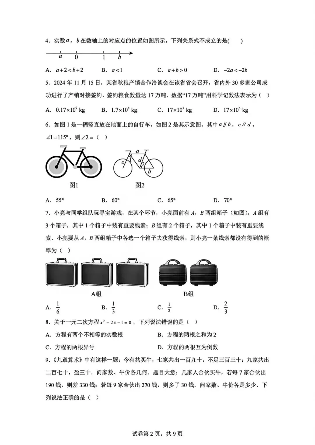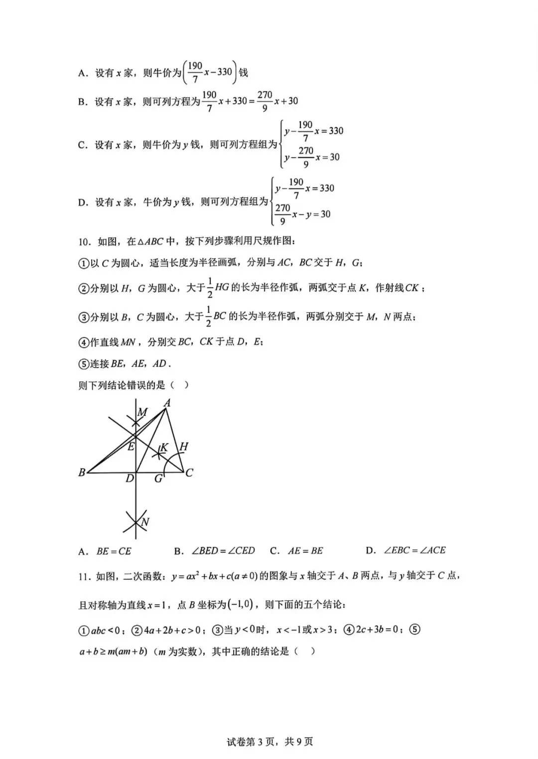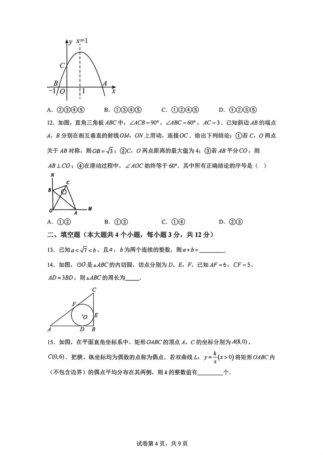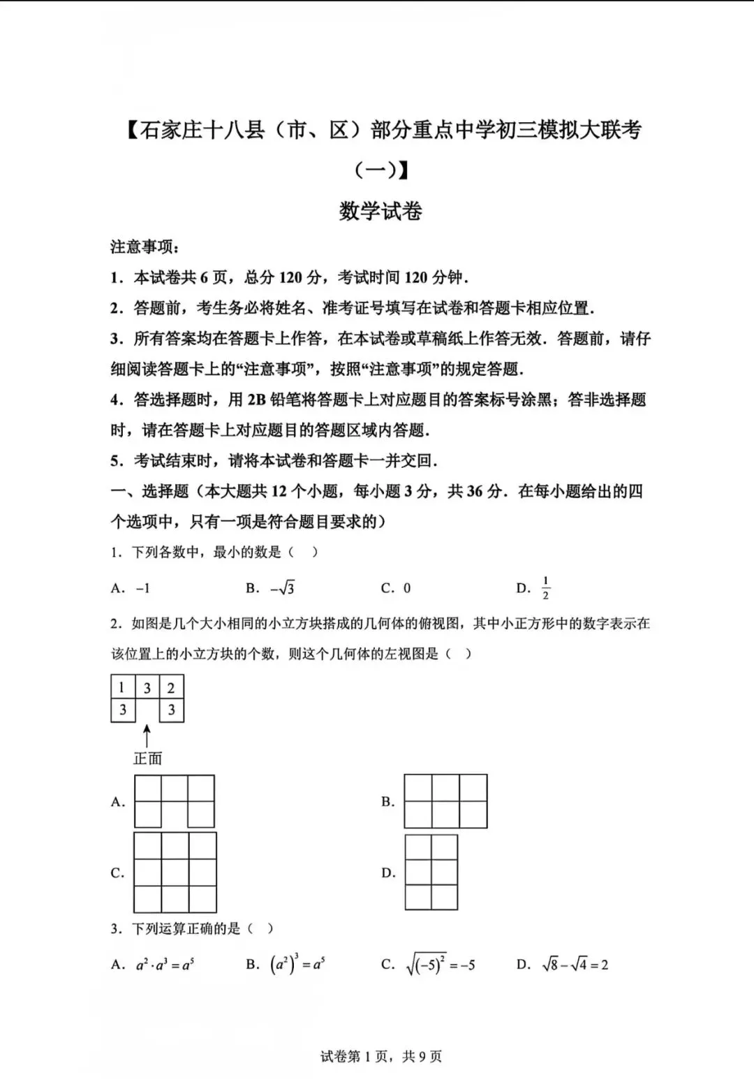 2026.1河北省九年级结课考试数学试卷