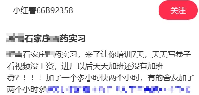 石家庄S药实习,来了让你培训7天,天天写卷子看视频没工资,进厂以后天天加班还没有加班费?!!!加了一个多小时快两个小时,有的舍友加了两个小时多。