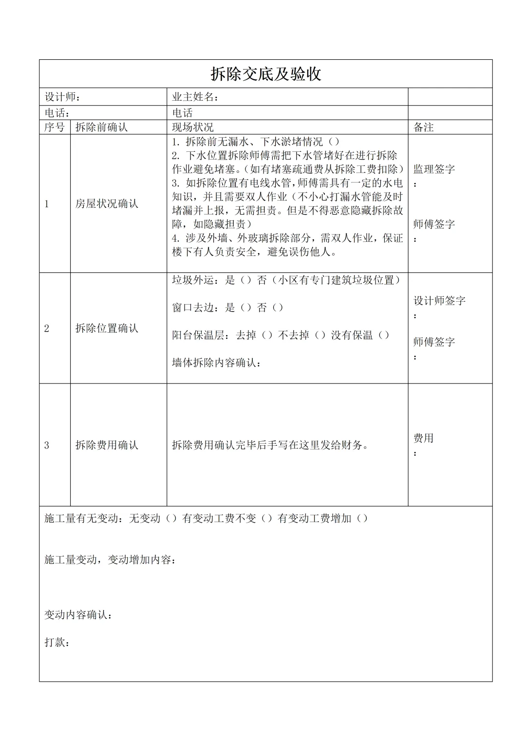 尾部分享一下阿振常用的拆除单,提前给师傅交代好的。