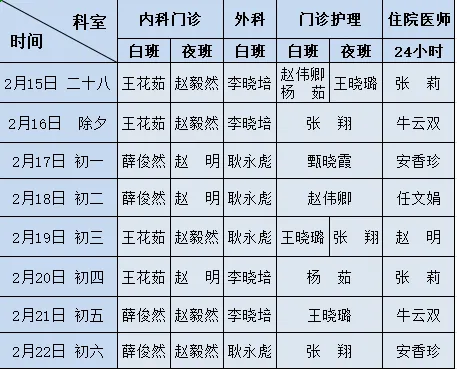 假期门诊医师出诊信息表: