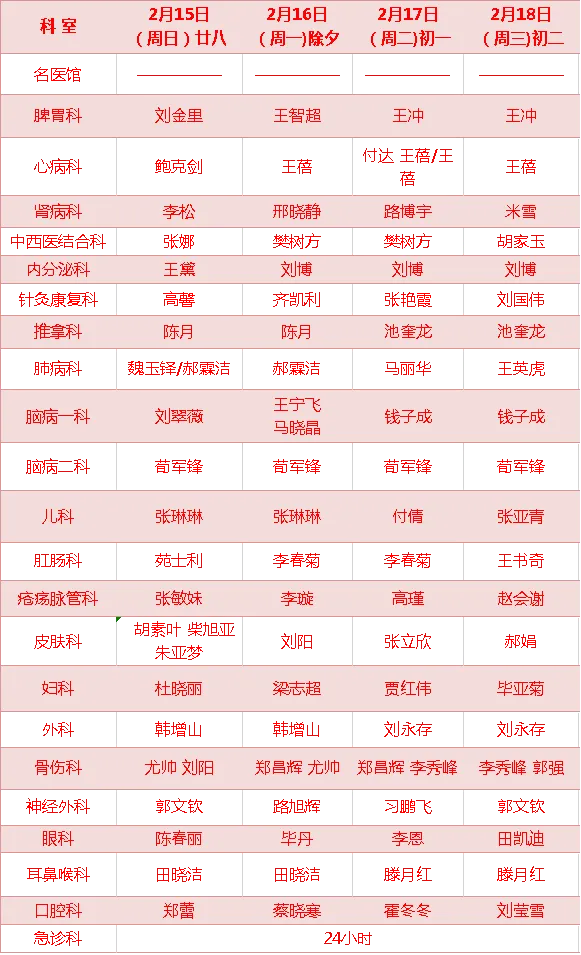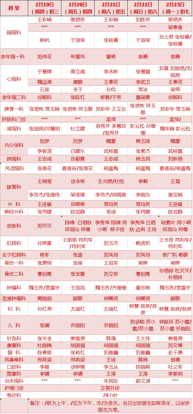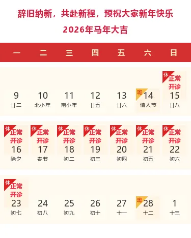 新春佳节,无论您是突发不适需要就诊,还是日常调理需要寻医,我们始终在岗位上等候,以仁心施仁术,以温情暖人心,用坚守诠释医者担当,用服务守护百姓安康。