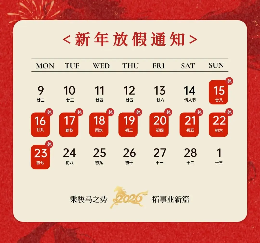 根据国家法定节假日安排,结合协会实际工作情况,现将 2026 年春节放假安排及相关事项通知如下: