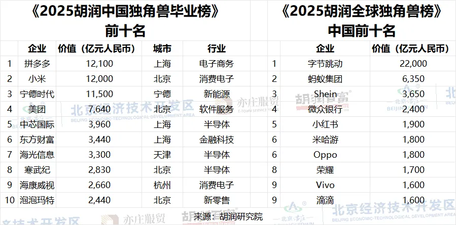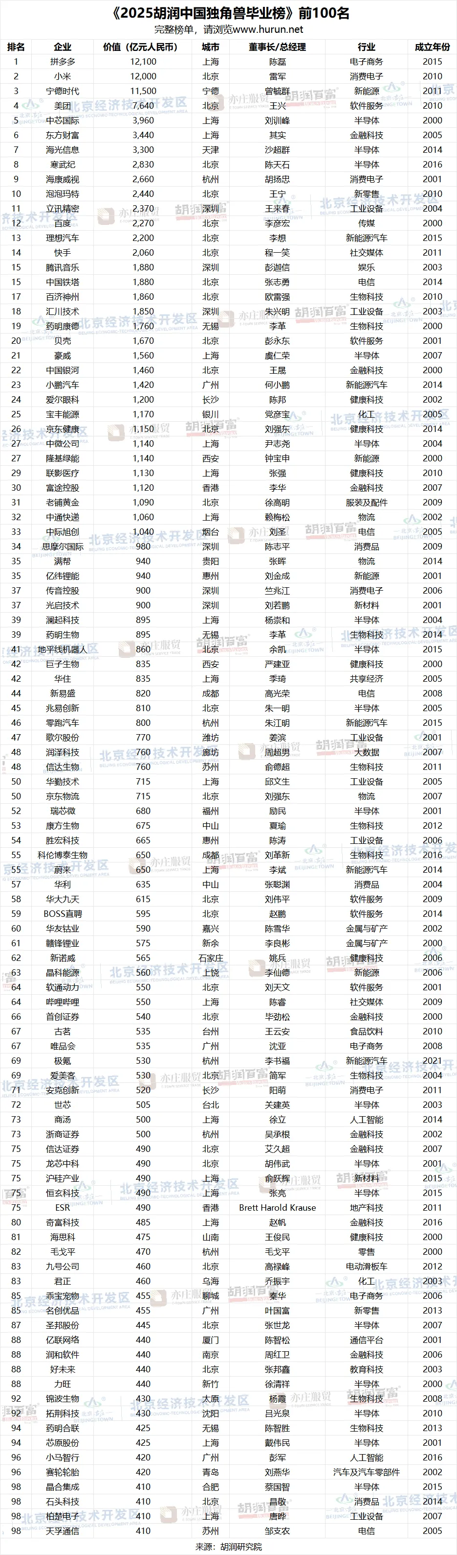 胡润研究院评选的独角兽企业,是指全球成立于2000年之后、价值10亿美元以上的非上市公司。本次毕业榜中的“毕业”,指的是独角兽企业成功上市。本次榜单估值计算的截止日期为2025年5月15日。