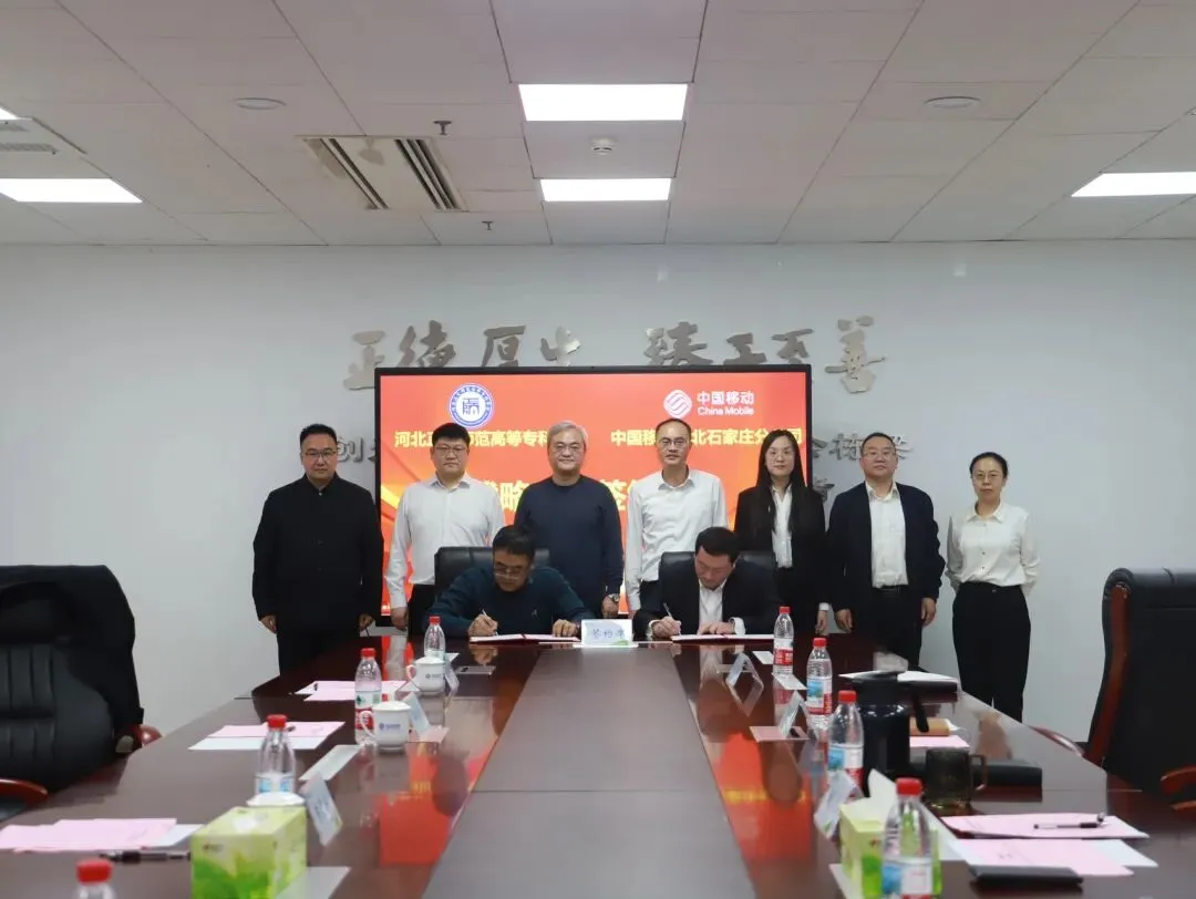 在双方领导的共同见证下,我校党委委员、组织部部长侯长青与中国移动石家庄分公司副总经理李智钢代表双方签订战略合作框架协议,双方相关负责人共同参与助签。