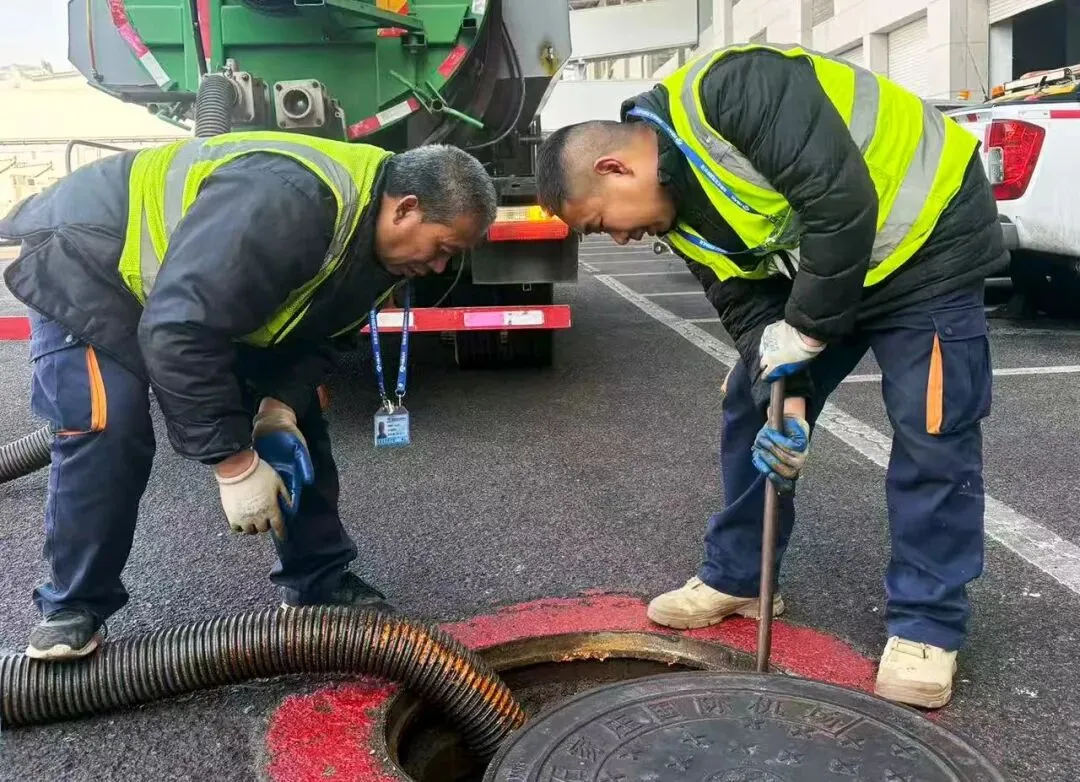 没有丝毫犹豫,孙卫龙立刻召集班组伙伴,迅速调配吸污车、高压疏通设备赶到现场,熟练地连接管道、调试设备,一系列动作行云流水,没有丝毫拖沓。“开启高压疏通设备,慢慢调整水流方向,对准堵点冲!”随着他的指令,高压水流带着强劲的力道直冲管道内部的堵点,溅起的污水落在他的工装裤上,瞬间便蒙上一层白霜,冰冷的触感透过厚重的布料渗入肌肤,冻得人打寒颤。为了精准定位堵塞的核心位置,确保疏通彻底,孙卫龙俯身靠近井盖,双眼紧紧盯着管道内部,一手稳稳扶住高压设备的疏通带,一手根据淤堵情况不断调整水流方向和力度。他的手套早已被污水浸透,冻得硬邦邦的,紧紧贴在手上,几乎失去了知觉,可他的动作却依旧精准、稳健,没有丝毫松懈。